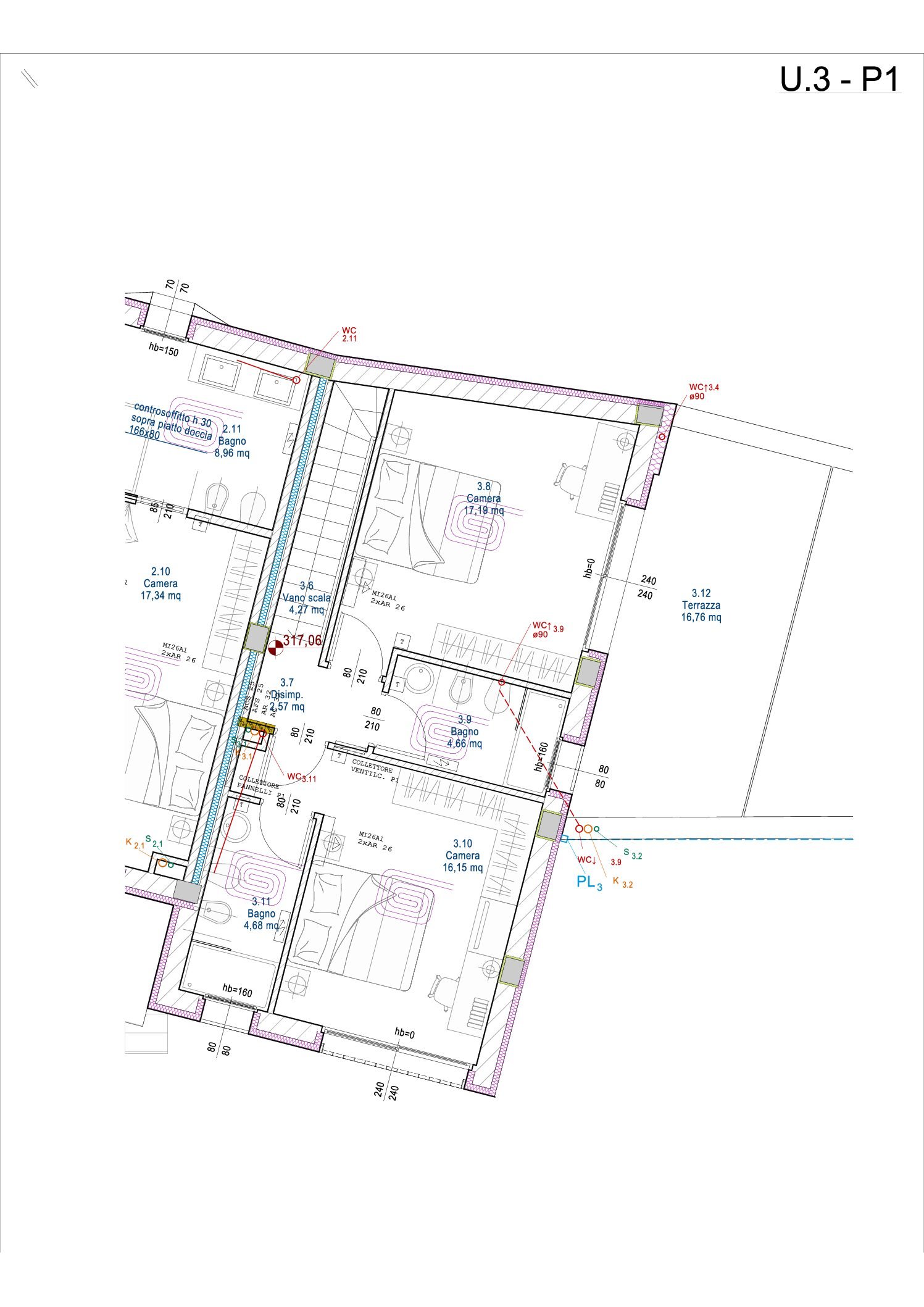 Al primo piano si sviluppa l’area notte, con 2 ampie camere dotate di bagni ed una terrazza con vista sui calanchi di Bologna. La terrazza è predisposta con attacchi acqua calda, fredda e scarichi per l’installazione di una vasca idromassaggio da esterno (Hot Tub).