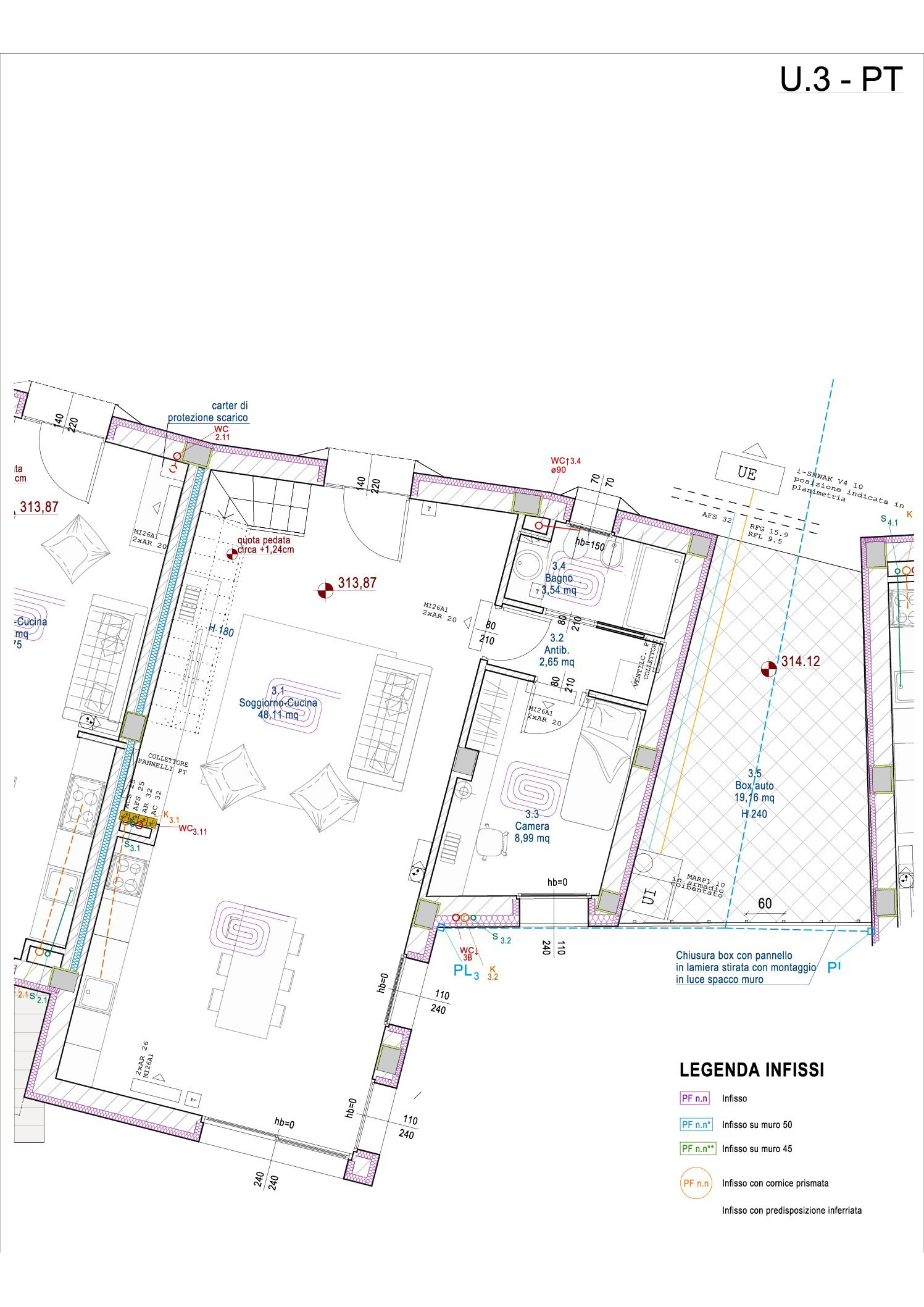 Il tetto verde con sistema di ritenzione idrica, cappotto termico, infissi termici ed impianto fotovoltaico da 3 Kw completano le dotazioni di risparmio energetico e fonti rinnovabili.